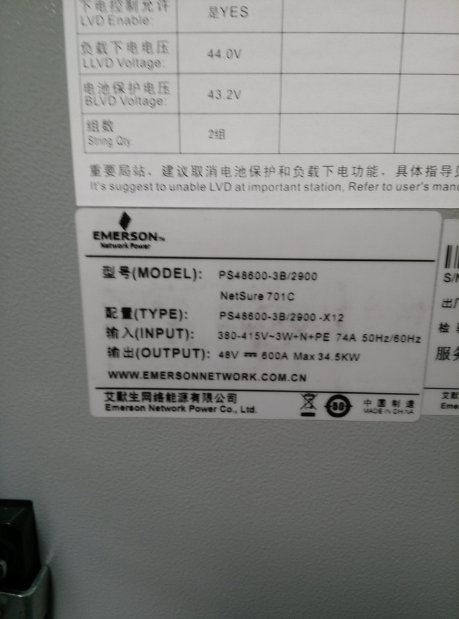 艾默生PS48600-3B2900NetSure701C艾默生高频开关电源机柜艾默生PS48600-3B2900室内一体化高频开关电源机柜