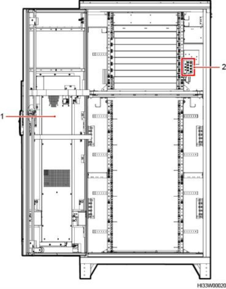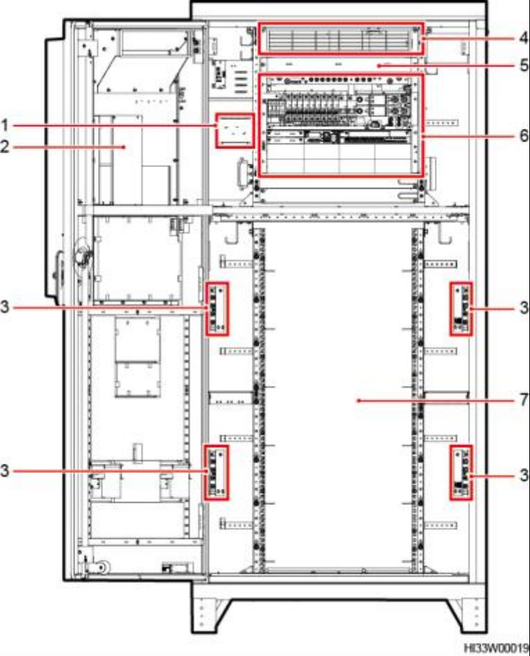(1)温控供电转接盒 (2)热交换 (3)电池铜排 (4)风机盒 (5)走线面板 (6)DCDU-400AN2