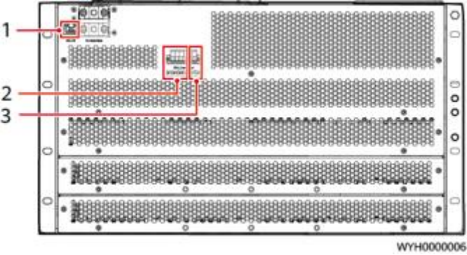 ( 1 )交流输出空开 (2)交流输入接线端子 (3)旁路模块安装空间 (4)整流模块/S4875G6/ (5)接地螺丝 (6)逆变模块/S4875G6/ M48500N1/M48500N2/ M48500N1/M48500N2/ iDCDU100D1 iDCDU100D1 ( 7 )SMU02C (8)用户接口模块UIM05B1 (9)通信扩展模块/油机扩展模 块安装空间 ( 10)CAN0/120Ω通信接口 ( 11 )CAN0/DO通信接口 ( 12)电源指示灯 ( 13)故障指示灯 ( 14)直流接线端子